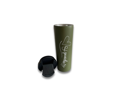 TERMO DE ALUMINIO COLOR VERDE OLIVO CON TAPA DE PLÁSTICO