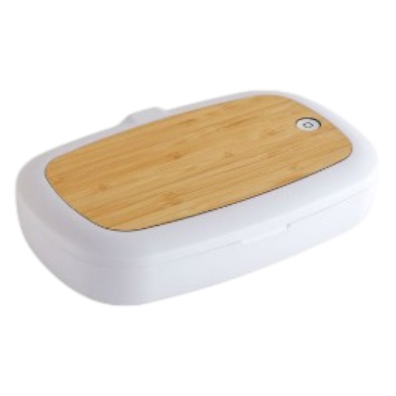 CAJA SANITIZADORA UV, MATERIAL: PLÁSTICO Y TAPA DE BAMBÚ, MEDIDAS 23.3 X 12.5 CM