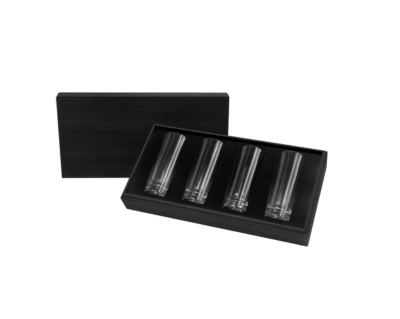 SET DE 4 VASOS TEQUILEROS DE VIDRIO. INCLUYE UN ELEGANTE ESTUCHE DE MADERA. PERFECTOS PARA COMPARTIR MOMENTOS ESPECIALES CON AMIGOS. CAPACIDAD DE CADA VASO DE 2 OZ. LA MADERA ES UN PRODUCTO NATURAL EL CUAL PUEDE PRESENTAR VARIACIONES EN TONALIDADES Y VETAS.