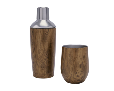 SET SHAKER SALÓN TAMAÑO: 9 X 23 CM SHAKER / 8.5 X 11.2 CM VASO / 25 X 28 X 9.5 CAJA COLORES: CAFE CAPACIDAD: 500 ML SHAKER / 350 ML VASO