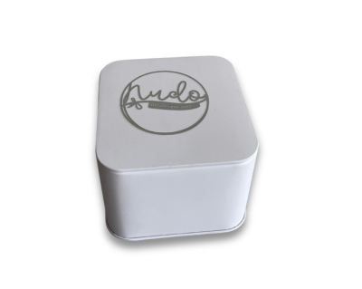 LATA CUADRADA DE 5 X 5 CMS COLOR BLANCA CON TAPA