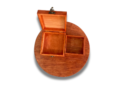 DELICADA CAJA DE MADERA CAOBA BARNIZADA AL NATURAL CON UN TOQUE HOGAREÑO, SU DECORACIÓN INCLUYE EL FOLLAJE Y EL MOÑO DE LSITON DEL COLOR PREFERIDO