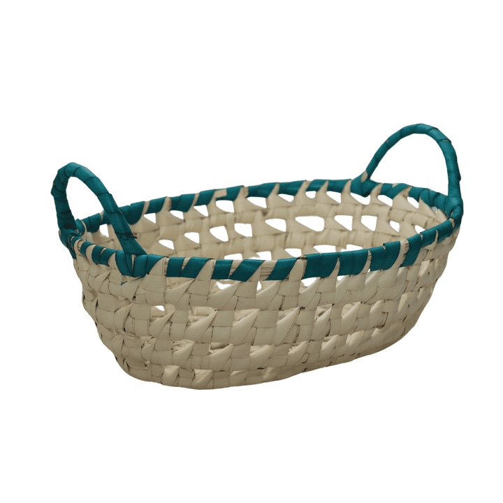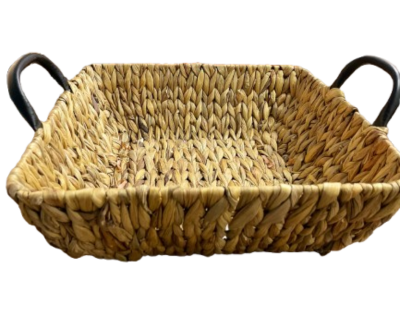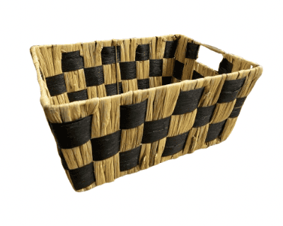 CANASTA CUADRADA CHICA EN COLOR PAJA Y NEGRO EN FORMA DE CUADROS