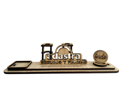 CORTE, ENSAMBLADO Y PEGADO DE BASE SOPPRTE DE FIRMAS DE COLABORACION PARA DOS LOGOS Y DOS PORTA BOLIGRAFOS