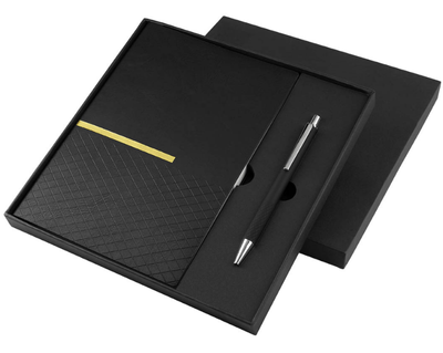 HL 9063 - SET DE LIBRETA ZLATNA 22.4 X 22.4 X 3 CM CAJA / 14.8 X 21.1 CM LIBRETA / 1 X 14.2 CM CON BOLÍGRAFO, INCLUYE PERSONALIZADO AMBOS ARTICULOS (BOLIGRAFO UNICAMENTE EN DTF O SERIGRAFIA)