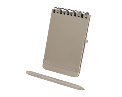 HL 9103 - Libreta de bolsillo con 60 hojas a rayas. Cubierta de plástico y cierre elástico. Incluye bolígrafo de plástico con sistema push. Su espiral y formato vertical la hace una opción práctica para notas diarias eficientes.