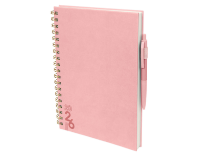 AGTS 026 - AGENDA SEMANAL CON 80 HOJAS. CONTIENE DATOS PERSONALES, CALENDARIOS 2025-2026-2027, PLANEADOR 2026, SEGUIMIENTO DE NUEVOS HÁBITOS, ORGANIZADOR DE TAREAS, PLANEADOR DE PROYECTOS Y DÍAS FESTIVOS. INCLUYE CAJA INDIVIDUAL DEL MISMO COLOR A LA AGENDA Y BOLÍGRAFO.